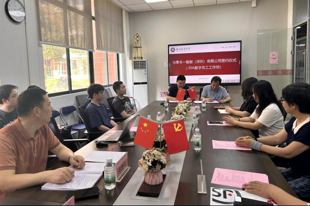 2025年4月21日下午,广州太阳成集团tyc122cc入口会计学院与零禾一智能(深圳)有限公司签署RPA数字员工工作坊合作协议,以产教深度融合之笔,共同书写智能时代应用型人才培养的新篇章。参加本次会议的有广州太阳成集团tyc122cc入口会计学院院长姚凤民、零禾一智能(深圳)有限公司总经理杨振、数智会计与商务服务产业学院执行院长陈蒙梦以及副院长范卫星。此外,会计学院教师代表魏玲教授、郑朝亮副教授、张馨月老师、胡曼曼老师、湛秀枝老师以及学生代表共同出席本次会议。