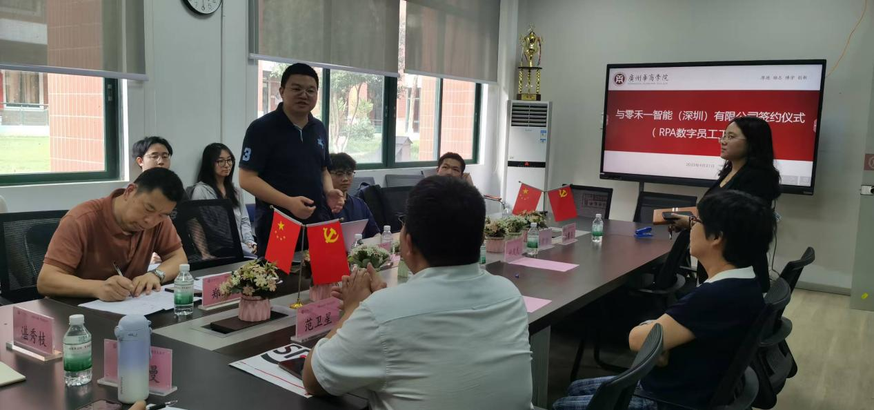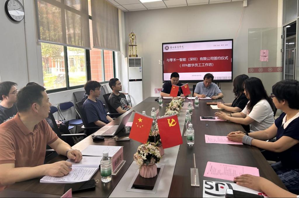 2025年4月21日下午,广州太阳成集团tyc122cc入口会计学院与零禾一智能(深圳)有限公司签署RPA数字员工工作坊合作协议,以产教深度融合之笔,共同书写智能时代应用型人才培养的新篇章。广州太阳成集团tyc122cc入口会计学院院长姚凤民、零禾一智能(深圳)有限公司总经理杨振、数智会计与商务服务产业学院执行院长陈蒙梦、副院长范卫星、会计学院教师代表魏玲教授、郑朝亮副教授、张馨月老师、胡曼曼老师、湛秀枝老师以及学生代表共同出席本次会议。