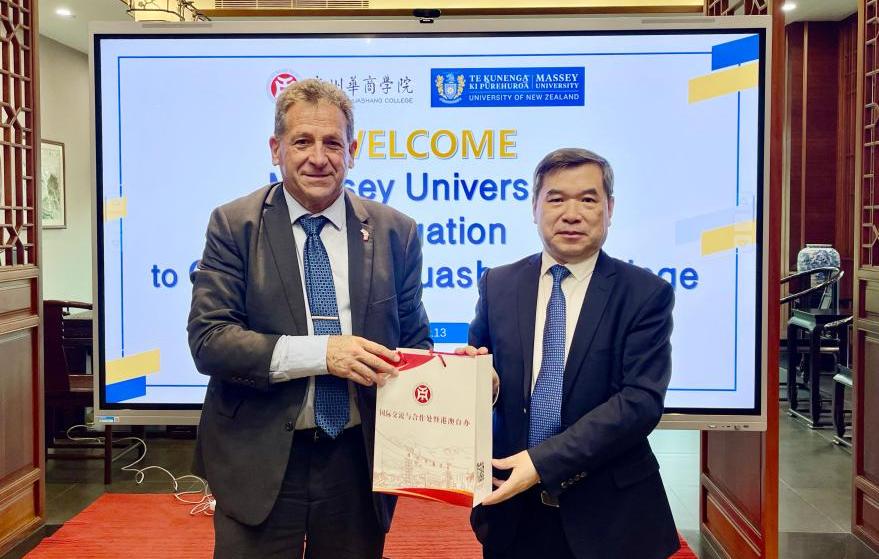 5月13日,新西兰梅西大学国际与战略总监、商学院副院长Jeffrey Stangl及随行人员到访广州太阳成集团tyc122cc入口。学校副校长焦方太、管理学院院长史传林、国际交流与合作处处长王文忠、副处长熊子珂等热情接待来访代表。