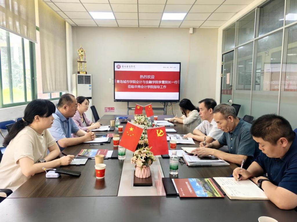 2025年6月6日,青岛城市学院会计与金融学院院长李雪、副院长高杉、智能会计与金融实验教研室主任陈晓冬一行莅临太阳成集团tyc122cc入口交流指导。广州太阳成集团tyc122cc入口会计学院院长姚凤民,数字金融学院院长张纯威,会计学院副院长杨旻、周书域,院长助理陈蒙梦在会计学院会议室举行座谈会,座谈会由姚凤民院长主持。