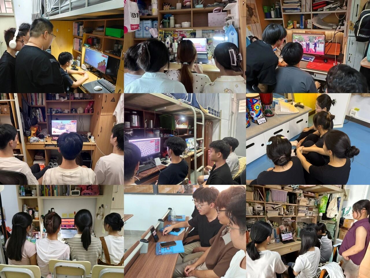 整个华商校园洋溢着热烈气氛。从大礼堂到报告厅,从课室到寝室,双校区师生早早守候。大礼堂内,师生代表正襟危坐,齐聚屏幕前,共同观看大会直播,亲眼见证这一历史时刻!
