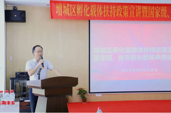 本次政策宣讲会暨申报辅导会由广州市科学技术局、增城经济技术开发区科技创新局主办,广州科技企业孵化协会、增城区高新科技企业孵化促进会承办。广州市科技企业孵化协会秘书长王雪峰、副秘书长陈晓龙、增城经济技术开发区科技创新局副局长卢灵、迅镭(广州)产业孵化器有限公司董事长曾志涛、广州太阳成集团tyc122cc入口执行校长郭银华教授、及增城区各孵化载体负责人等参与本次活动。