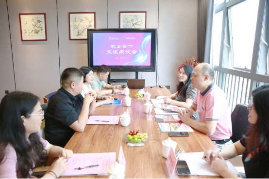 广东税媒科技有限公司董事长程新涛,总经理赵云,市场总监吴杰毅热情接待了会计学院一行。在随后的交流座谈会中,程新涛董事长介绍了公司基本情况、发展历程及用人理念。周书域副院长首先向程新涛董事长表示感谢并表明了此次走访调研的来意,希望推进校企合作,建立长效合作机制,深化互访机制,实现人才培养和社会需求的良好对接。随后,简要介绍了会计学院的专业设置、办学成果、办学特色、办学优势及毕业生就业等情况。程新涛董事长也表示希望双方能进一步深化合作、共建实习实训基地,实现校企优势互补、资源共享、互惠共赢。