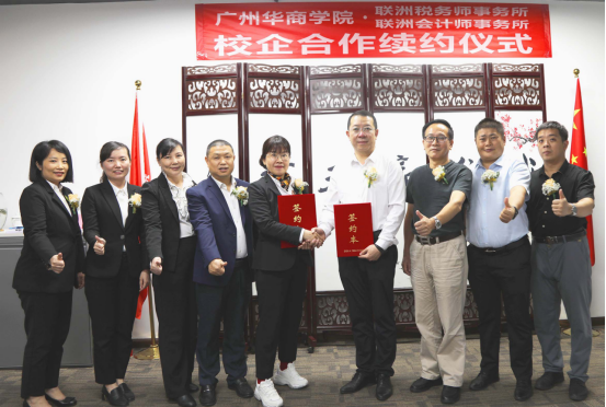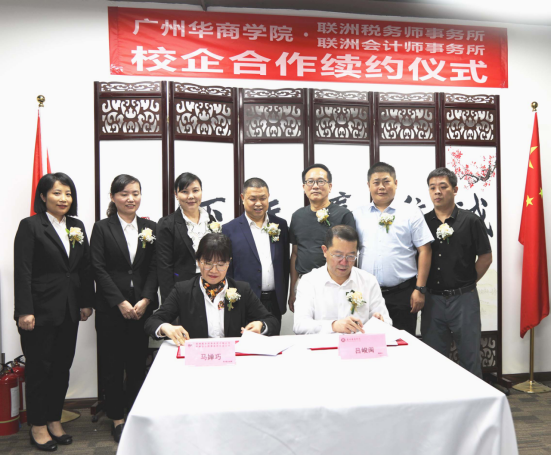 吕峻闽和马蝉巧代表校企双方,签署了联洲税务师事务所有限公司和联洲会计师师事务所有限公司与广州太阳成集团tyc122cc入口会计学院“校外实践教学基地”的第二期合作协议书。