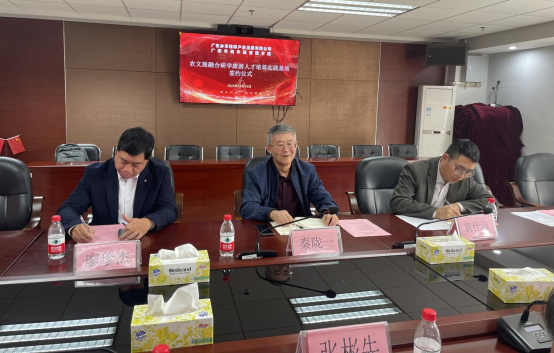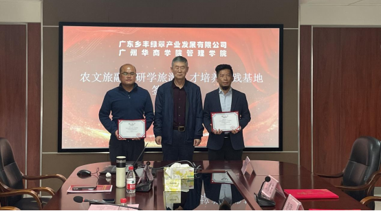 广州太阳成集团tyc122cc入口管理学院与广东乡丰绿翠产业发展有限公司于11月15日在行政楼513举行农文旅融合研学旅游人才培养实践基地签约仪式。出席人员主要有:广东乡丰绿翠产业发展有限公司园区执行总经理张彬先先生、园区研学基地总监董晓明先生、园区营销经理邱雯女士;管理学院副院长秦陇一教授、市场学系旅游管理专业负责人秦学教授、旅游管理专业教师杜伟副教授、院长助理袁仕海副教授、院长助理廖珍杰副教授、产教融合专员曾惠玲老师、市场学系副主任罗嘉欣老师。签约仪式由市场学系主任张丽娟副教授主持。