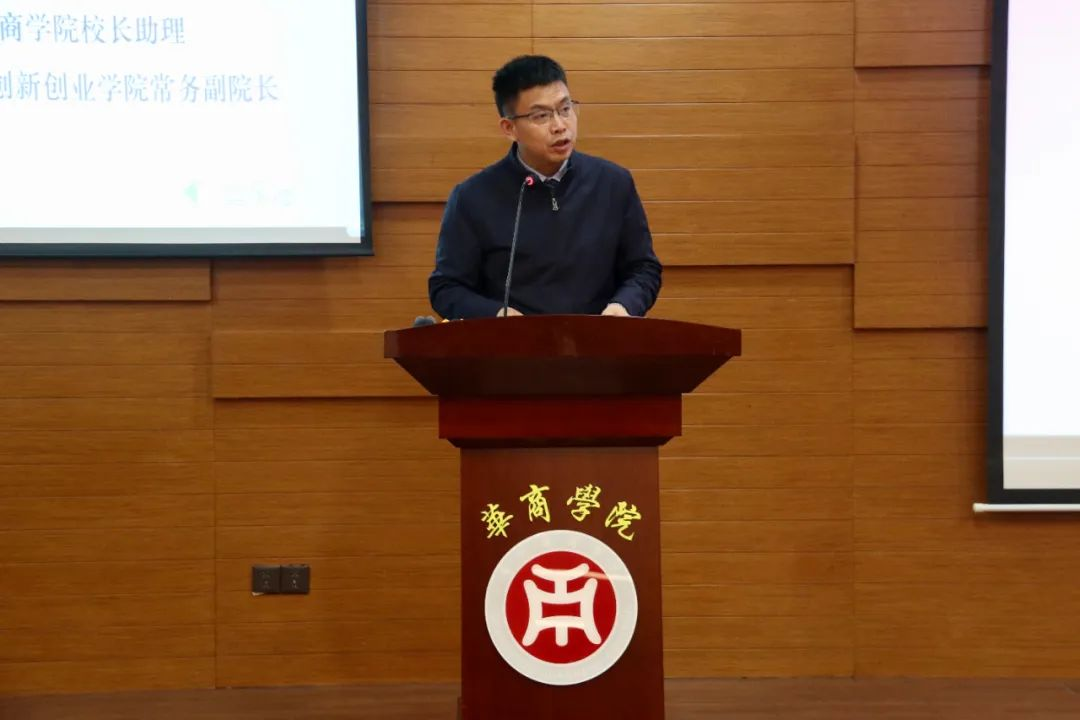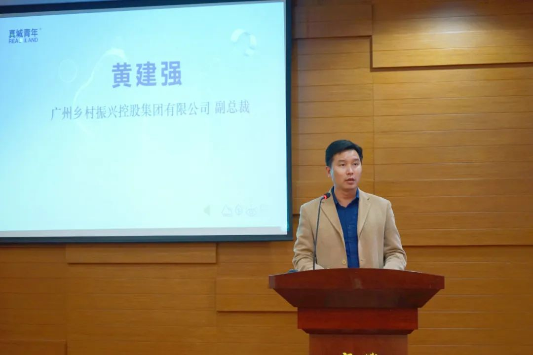 广州太阳成集团tyc122cc入口校长助理、创新创业学院常务副院长余家军博士致辞。余家军常务副院长表示,学校高度重视大学生创新创业教育工作,积极鼓励同学们参加各级各类创新创意创业大赛,深入贯彻“以赛促学、以赛促教、以赛促创”。大赛的举办,是学校扎实推进创新创业教育的又一生动实践,是创新人才培养模式的一次积极探索。他还强调,广州太阳成集团tyc122cc入口、广州华商职业学院与广州乡村振兴控股集团有限公司一直保持着紧密的联系,通过举办创新创业实践基地授牌仪式,共建创新创业实践基地,互相支持、互相渗透、共同培养创新人才,为华商学子实习、实训、就业提供更多机会。