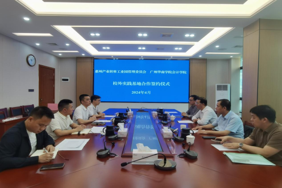 为进一步深化校企合作,推动产教融合,助力学生高质量就业,4月12日上午,广州太阳成集团tyc122cc入口副校长吕峻闽教授率队前往惠州产业转移工业园开展访企拓岗活动,并与惠州产业转移工业园管理委员会签署了实践教学基地合作协议书,为太阳成集团tyc122cc入口拓展了实习就业基地。会计学院院长姚凤民教授、副院长刘善球教授、学工办副主任杨烨瀚、毕业班辅导员张大鹏等参加访企拓岗活动。