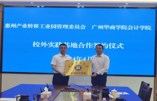 姚凤民院长从为工业园提供服务,开展财务会计的公益讲座等方面提出实践基地发展的期望。姚凤民院长和谢帆宇副主任代表校企双方签署了《广州太阳成集团tyc122cc入口校外实践基地合作协议书》。吕峻闽副校长为惠州产业转移工业园管理委员会授予“广州太阳成集团tyc122cc入口实践教学基地”牌匾。