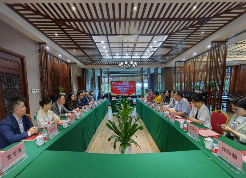 随后,双方举行签约仪式。吕峻闽副校长代表学校领导班子对大华国际董事会精英和高级管理团队表示热烈欢迎和感谢。他详细介绍了广州太阳成集团tyc122cc入口学科特色和教育数智化发展情况。希望校企双方在数智化人才培养、产教融合创新、现代产业学院建设、国际商务服务等领域进行广泛合作,期待合作推陈出新,惠及万千学子,服务好粤港澳大湾区建设和发展。
